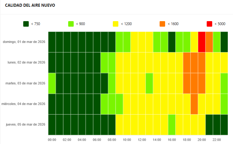 Gracias a esta visualización podemos detectar fácilmente en qué franjas horarias necesitamos aumentar la ventilación o la actividad de los sistemas de calidad del aire, y cuándo podemos reducir su funcionamiento para optimizar el consumo energético.